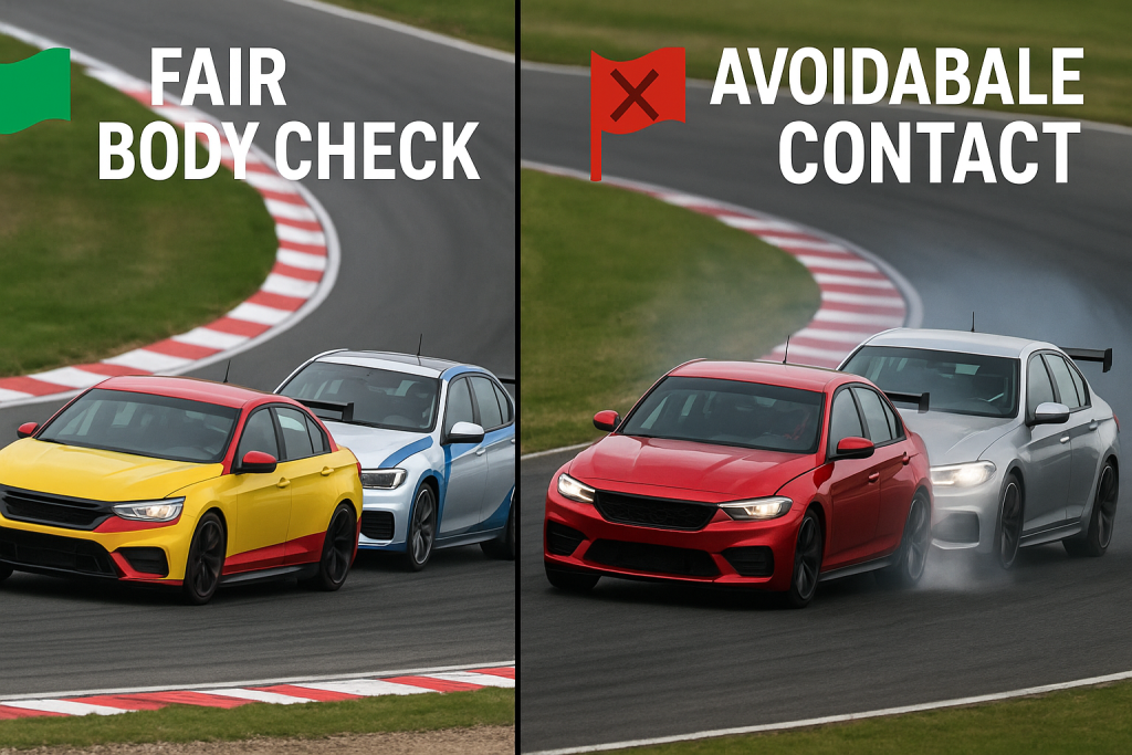 - โค้งผ้าห่ม (Hairpin) ท้ายเรซ: รถตามยืนครึ่งคันก่อนจุดเบรก ชะลอได้ เลี้ยวได้ → ขอบตัดสินใจ “แฟร์” แม้มีการแตะกันนิด
